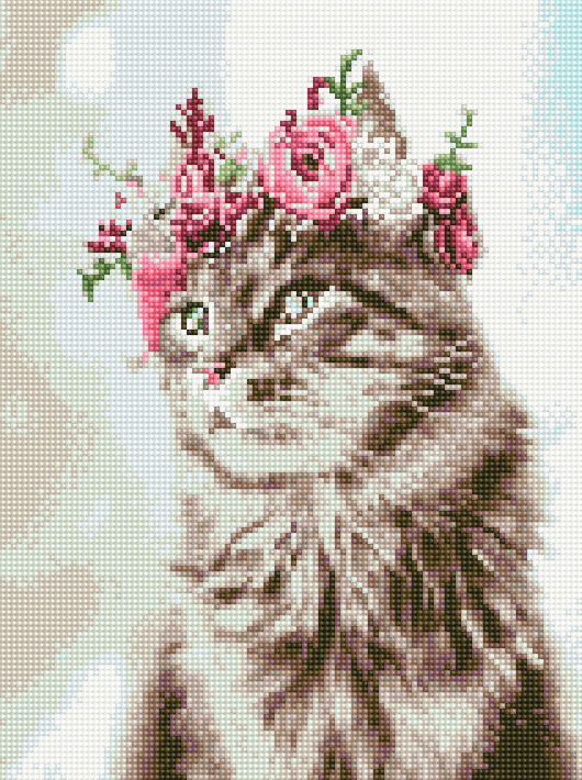 Алмазная живопись Кошка в веночке (EJ1251) 30*40 см. Rainbow Art