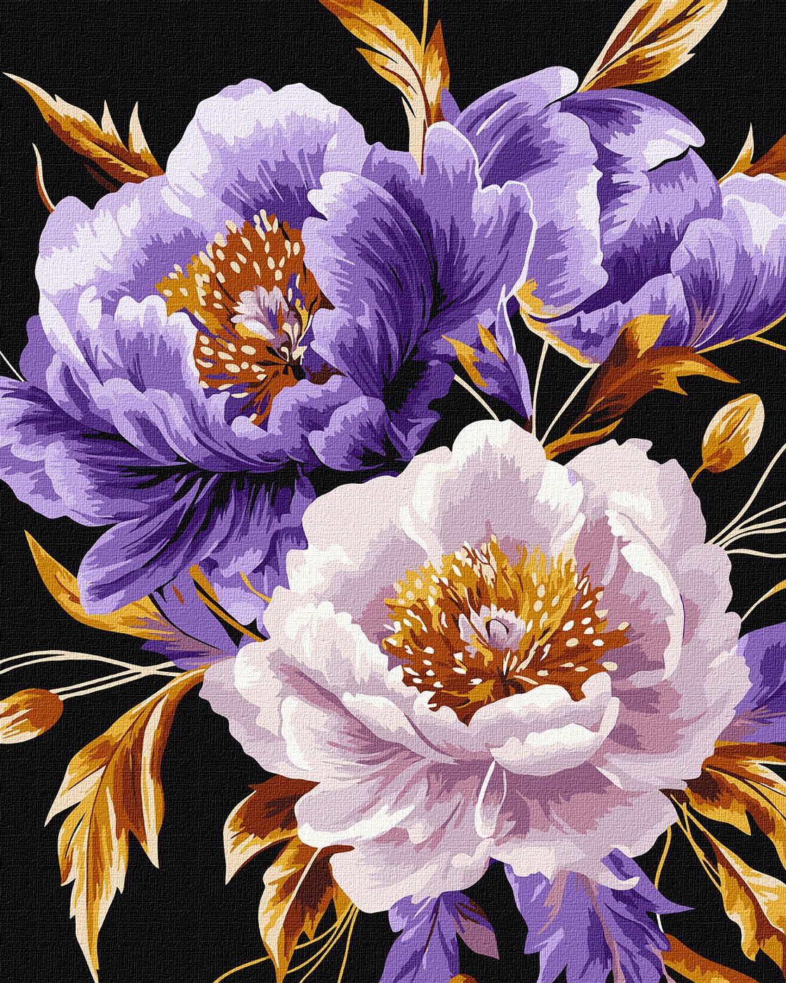 — Натуральне полотно на підрамнику із галерейною натяжкою. На картині нанесена схема контурів зображення з нумерацією
