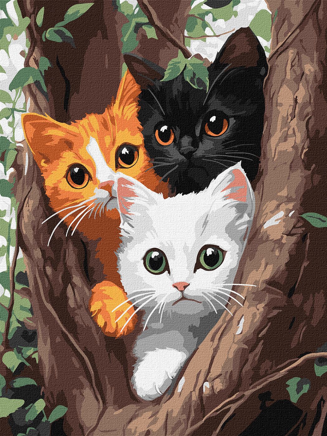 Картина за номерами — Котики на дереві ©art_selena_ua (KHO6736) 30*40 см. Ідейка